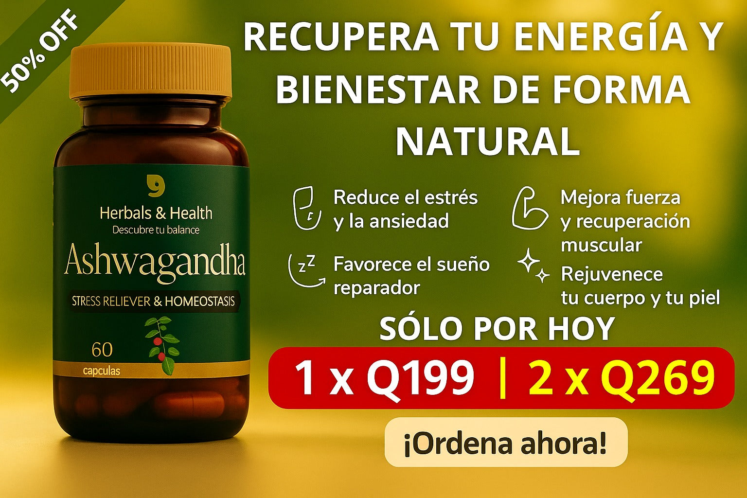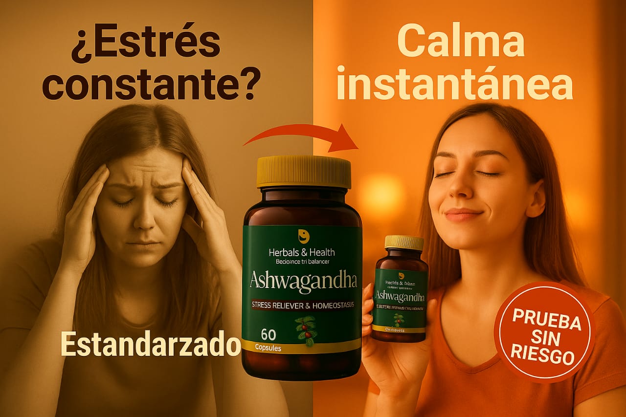 Ashwagandha 100% natural en cápsulas concentradas. Reduce estrés y ansiedad, mejora energía y concentración, ayuda a regular el cortisol, apoya el metabolismo y actúa rápidamente. Envío seguro y fácil de tomar.