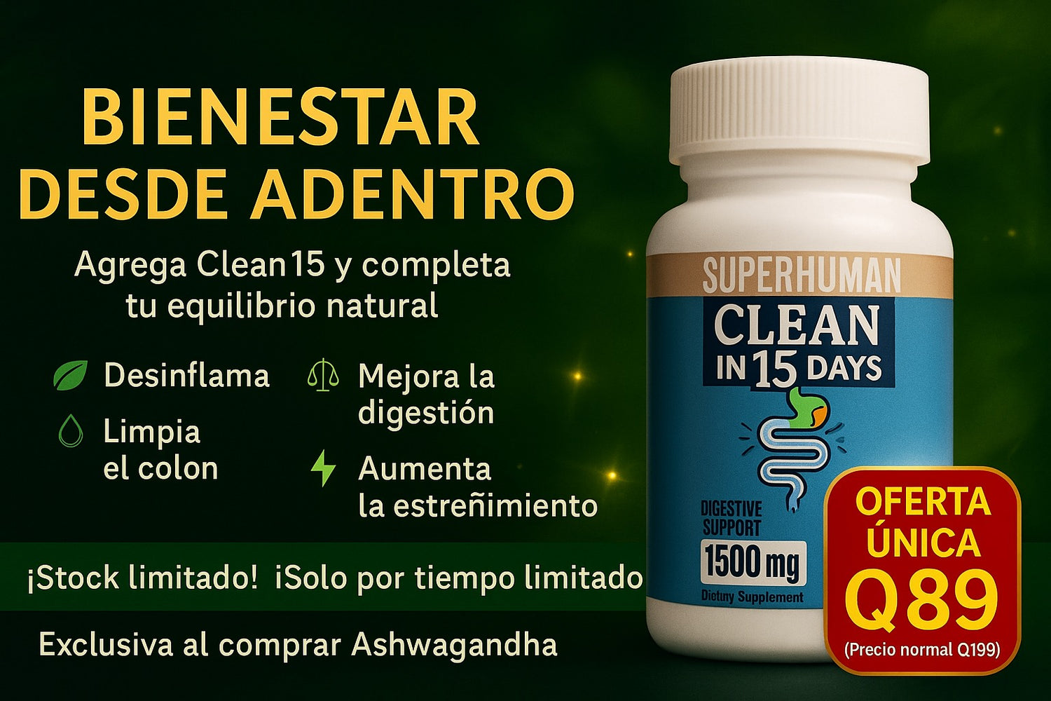 Limpia tu organismo y potencia los efectos de Ashwagandha con Clean15 Detox.